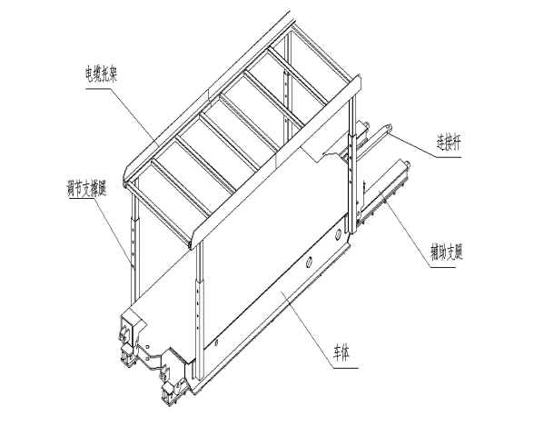 6,每辆车配置电缆存放架,存放架为框架结构,具有高低可调,与车体通过螺栓连接,外形尺寸和车体一致。